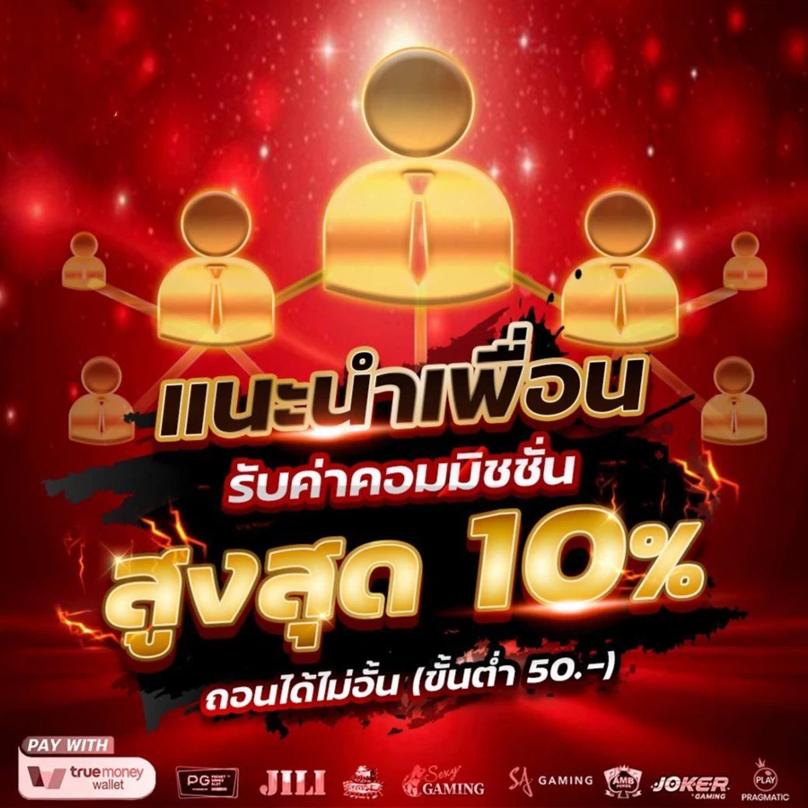 ตอบ : มีระบบเชิญเพื่อน รับค่าคอมมิชชั่นทุกครั้งที่เพื่อนสมัครและเล่นจริง ยิ่งเชิญมากยิ่งได้รางวัลเพิ่ม